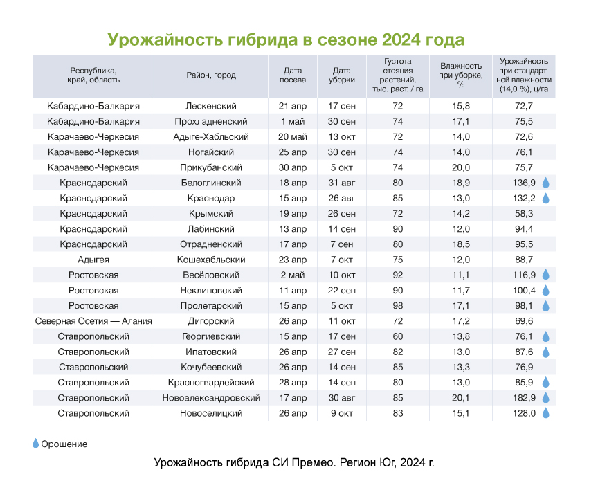 Как и у других гибридов линейки АРТЕЗИАН™, у гибрида СИ Премео хорошая засухоустойчивость, которая позволяет выращивать его даже при недостатке влаги и получать максимальную в данной группе спелости урожайность.