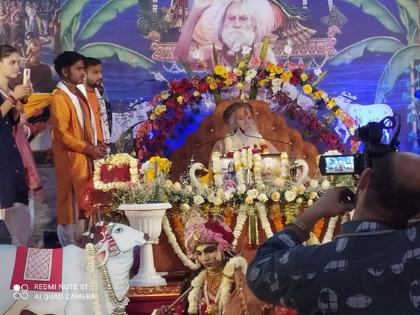 ...Нынешний  Вриндаван, как и прежде, -  место поклонения святым.  Например, Йогину   Девраха Баба. Община, что чтит память знаменитого провидца,  участвует в духовных мероприятиях. К примеру, в Маха Кумбхамеле (всеиндийский праздник, на берегах священной реки Ганг, в 2025 году), с участием более полумиллиарда человек! Мероприятие было видно из космоса (см. фото). В торжестве принимали участие и поклонники животных. Не оставляли в стороне  святую птицу,- голубя.  Хранили  любимого  воспитанника даже в дни  торжеств.