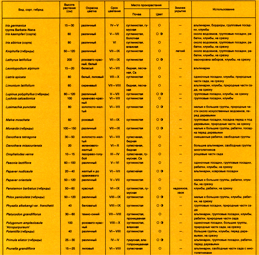 Половое (генеративное) размножение — важнейший способ размножения. Однородное потомство (по высоте и окраске цветов) можно получить только из посевов семян чистых видов, а при возможности — и некоторых разновидностей. Из посевов большинства сортов возникает неоднородное потомство. Абсолютное постоянство сортов гарантирует только вегетативное (неполовое) размножение. Одно из условий успешного размножения чистых видов путем высева — вполне созревшие семена, точное определение срока и способа посева, прорастание, появление всходов и т. д. Семена высевают иногда после предварительного протравливания в зимний период в теплице. Глиняные цветочные миски и горшки для высева тщательно моют, по возможности обжигают над огнем, чтобы уничтожить в них возбудителей грибковых заболеваний. Новые ящики должны быть продезинфицированы соответствующим препаратом. Кроме этих сосудов применяют горшки из пластмассы, которые отлично сохраняют равномерную влажность и прекрасно моются. Дно сосудов наполняют грубым песком или черепками горшков, что выполняет функцию дренажа. Землю, подходящую для высева многолетников приготовляют, перемешивая равные части старой листовой земли, торфа и речного песка. Перед высевом землю стерилизируют. В емкостях землю для высева многолетников нужно разравнять и слегка примять. Густота высева определяется прорастаемостью семян. Семена с хорошей всхожестью не высеваются слишком густо. Посевы присыпают тонким слоем обожженного песка. Толщина этого слоя зависит от величины семян. Крупные семена присыпают более толстым слоем, мелкие семена не прикрывают вовсе. Для некоторых видов семян важно учитывать их требования к свету. Семена, всходящие на свету, осторожно присыпают, лишь когда их проращивают. Семена растений, которые всходят с трудом, желательно, помимо обычного присыпания песком, прикрывать еще слоем мха (Sphagnum), который лучше поддерживает равномерную влажность. Все сосуды с посевами снабжают биркой, где указано название растения и дата высева, а по возможности и происхождение семян. Хотя большинство семян хорошо всходит в теплицах, лучше в первой фазе посева поместить их на незащищенном грунте (некоторые многолетники всходят только после предварительного подмерзания). Через 14—20 дней посевы (соответственно виду и сроку прорастания) необходимо перенести в теплицу, где температура, воздуха около 10—12 °С; там проросшие растеньица пикируют. Многолетники, которые легко всходят, высевают весной в цветник или в холодный парник. Перенося горшки с посевами в теплицу, надо следить за тем, чтобы посевы не засохли. Горшки прикрывают полихлорвиниловой пленкой. Нужно ежедневно контролировать, не появляются ли где-нибудь грибковые заболевания или не начинают ли некоторые виды уже прорастать. Поливать следует очень осторожно; ведь не исключена опасность вымывания мелких семян. Хорошо зарекомендовал себя полив растений снизу. В солнечные дни растения нужно слегка затенить матами, не забыв, разумеется, своевременно эти маты убрать. Необходимо растения хорошо проветривать, так как это очень важно для их закалки. Молодые растения начинают пикировать сразу, как только они достигнут такой величины, что их можно взять пальцами. Для пикирования применяют ту же землю, что и для посева, а лучше — еще более питательн
