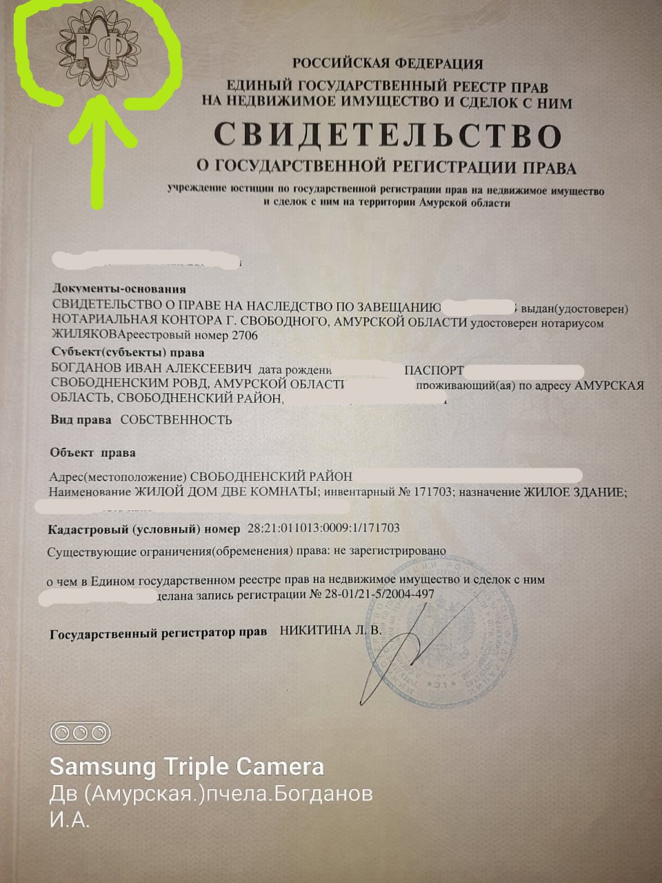 Чего вы тут выкладываете свидетельство на право собственности земельных долей, которые выдавались еще в советские времена? Таких свидетельств давно нет, их надо было переоформлять как положено.