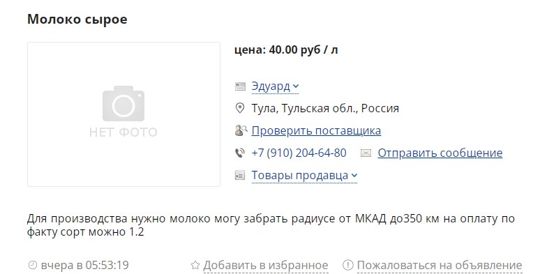 Вы с людьми вживую поработайте иак. Что только обьявление посмотреть и делать какие то выводы.. Обман на обмане. Пишут сыропригодное молоко, приедете, вам туфту покажут и будут ещё удивлятся, чего вам не нравится.. Думаете, всегда как написано, так и есть. Ага, держите каман шире... Лукавят и будут лукавить.. И разбавлять и сливать что попало в молоко, авось пролезет.. Не, ну если вы так уверены, в честности людей))) флаг вам в руки, как говорится))