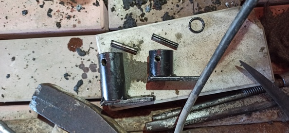 Рычаги 1-R и 2-3 сидят на валу при помощи некого подобия штифта, листовой металл свернутый в трубку и по краям развальцован. Молоток, наставка, немного терпения и снял. Единственное перед снятием немного обжал пасатижами штифт.