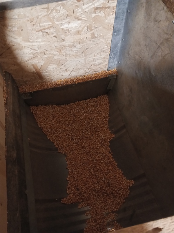 Закром для зерна в кормоцехе из 200-х л бочек, разрезанных вдоль и весь закром из 3-х бочек , на 3 отсека. Кг 250+каждый таскать полупустой прицеп так себе мысля. А насыпать все в одну кучу, тоже не вариант. Рецептуру соблюдать надо yes3 и возить мне со склада 350 м от дома