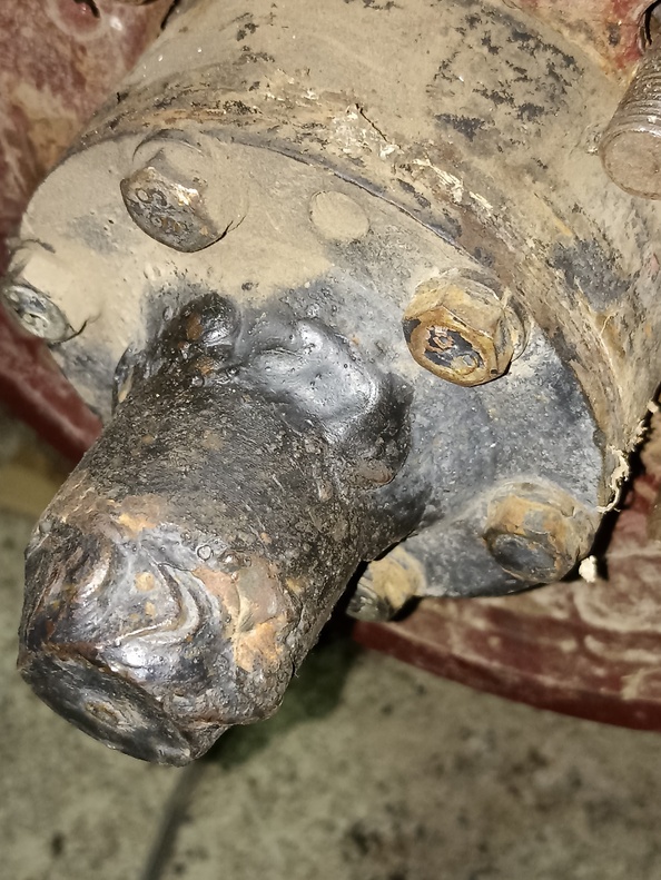 Вытащил заготовку из чулка и на большом токе приварил втулку с фланцем и полуосью.