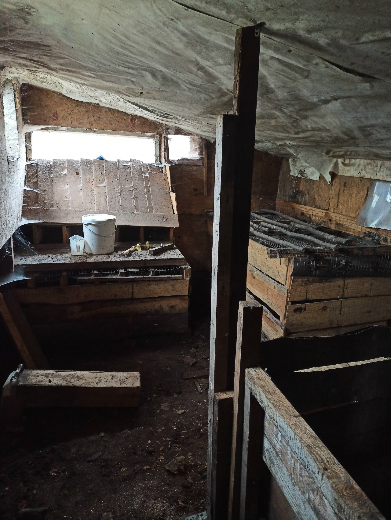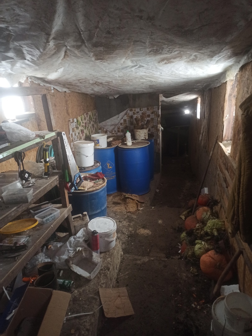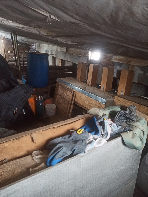 Всем привет. Подземный сарай всё ещё жив. Едва ли он крольчатник, скорее свинарник. Покажу как что сейчас и что буду переделывать. Начнем с конца. Там зимовали куры. Этой зимой будет так же. Но в будущем всё эту уберу и поселю в этом закутке поросят. Для 4 штук будет в самый раз.