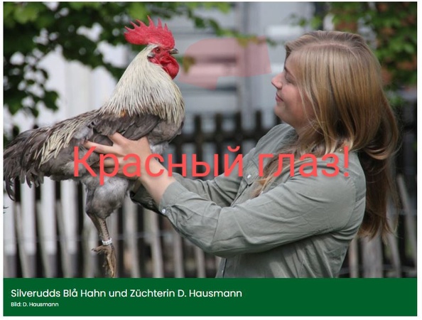 Во первых птица не моя, фото из немецких источников, когда я это публиковала моим первым силверуддам было от роду 2,5 месяца! Это весна 2020го года! А у Елены их еще даже в планах не стояло! Тоже касается последнего процитированного Вами фото - из немецкого интернета! Публиковала я их тогда просто для популяризации породы, поскольку мои еще цыплятами были! Во вторых я не вижу никаких красных глаз на этих фото, что за чушь? И с желтым тоже скорее Вы дальтоник, потому что я вижу и у своих в том числе скорее зеленоватый оттенок на плюснах, что у светло окрашенных, что у темноокрашенных птиц. У сплэш и светло-голубых он близко к желтому, но все равно совсем не такой чисто желтый, как у плимут рок например, а либо с болотным либо с темно-серым оттенком. И в любом случае, да, фото и экран монитора всегда несколько искажают оттенки (
