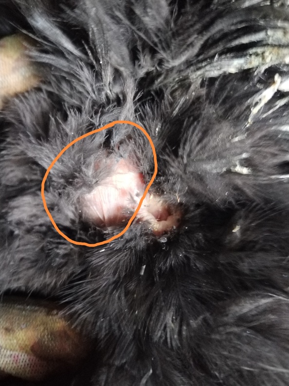 Только что обнаружила у этой курицы опухоль рядом с клоакой.