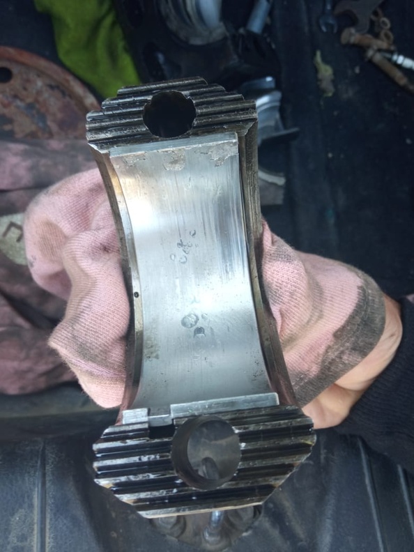 Всем привет,случилось у меня такое.Вчера пахал поле и вижу что давление начало падать и трактор заглох.за маслом следил в норме и за температурой.не мог понять почему заглох.выйдя осмотрев трактор увидел что болт выпал из Опоры двигателя передний который,и край опоры сдвинулся вперед и упёрся в Шкив коленвала и создал дополнительную нагрузку на двигатель.Поставил обратно болт и попробовал запустить ,двигатель крутится но не запускается.сразу подумал что вкладыши провернулись.Снял все бугеля вроде всё в норме и снял с шатунов и увидел на одном выемки фото прилажу.хочу узнать у Вас из за этого не заводилось или может где ещё глянуть нужно