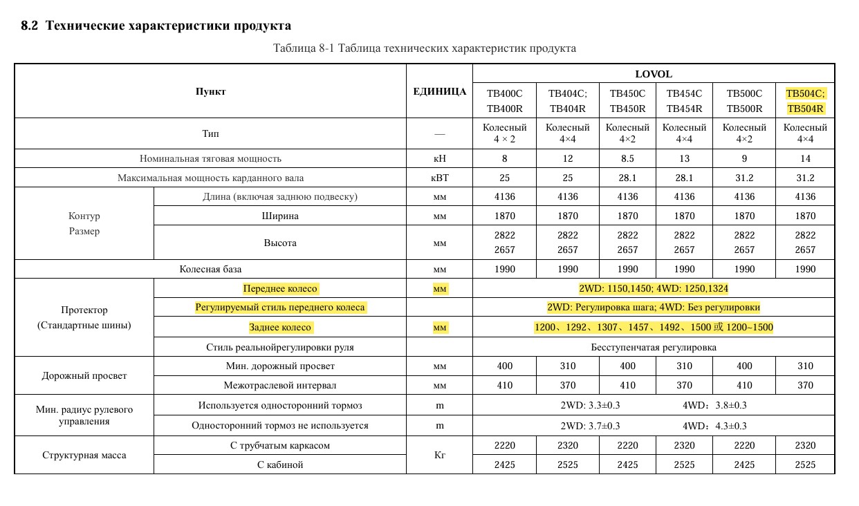 Нашел это видео, я приятно удивлен - это реально достойно. А если колеса поставить 13.6*28 и утежелители, то к 3т вес подойдет. Видимо китайцы занижают вес, чтоб по таможне меньше платить было, не удивлюсь если и кобыл будет больше 50 и навеска будет поднимать больше тонны. Чего чего а тяги у него хватает, очень резвый конь. Есть видео где Lovol 504 и МТЗ 82 перетягивают друг друга, так вот МТЗ не смог, теперь понятно почему.