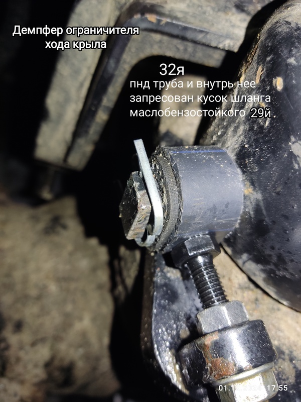 Так же болты ограничителя поворота крыла начали делать выработку на переднем мосту об который они трутся, на шляпки болтов приклеил накладки колпачки (на озоне заказывал колпачек на болт/гайку м10 под ключ 17).