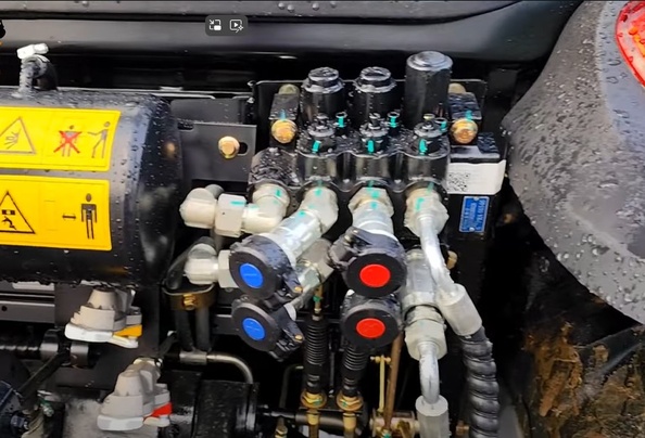 Я подключал. Когда заказывал шланги, принёс муфты (папы) которые шли в комплекте с трактором, мастер посмотрел и сказал что там не распространённая (редкая) резьба, и предложил поставить другие. Ответные части, которые стояли на тракторе не менял, всё соединилось, работает, не течёт. Если увеличить будет видно.