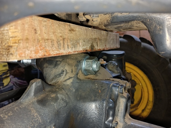 Вчера удалось продолжить ремонт, втулки пришли, ось наварили, обточили. Втулки запресовал просто: взял длинную шпильку с резьбой М22, шайбы и гайки. После затяжки втулки встали на место. Долго ставил ось переднего моста, малейший перекос и ось не движется. Люфт практически отсутствует.