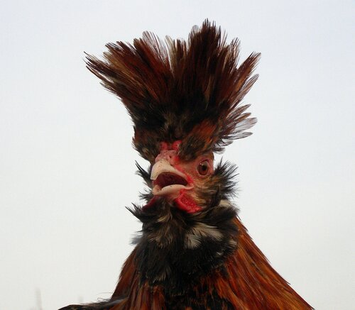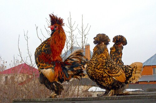 Ja v Avstrii na ich Nacionalnoj vystavke videl očeň pochožije kury svejcarskoj porody "Apenzelskij chocholač". oni byvajut zlotistyje,serebristije s čornymi pjatnami i čornyje.