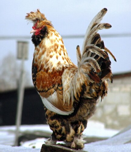 Не понимаю, почему хвост этого павловского петуха - короткий. Он высотой практически достигает головы птицы.