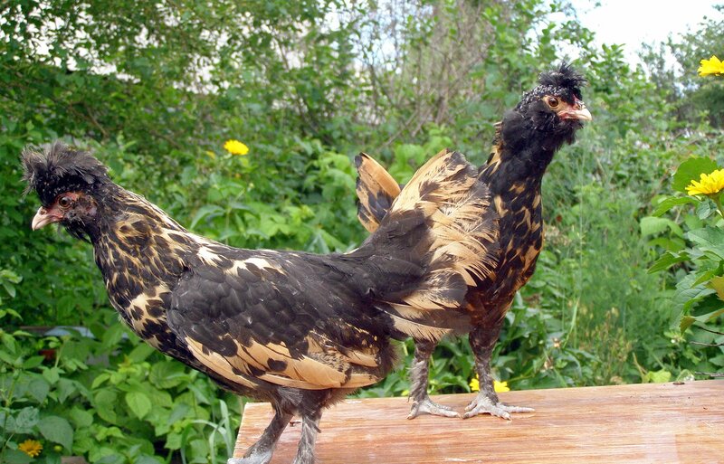 Я не даром поместил трех курочек с шлемовидными хохлами - при желании на форуме можно найти и их матерей, уверяю вас, они почти копии..., но чем однороднее становится стадо по форме хохла (шлемовидного), тем больше % молодняка с "хохолками" как у совиных бородатых, ла флеш... (???) Какое время будет это "выщепление" ? Или это бесконечный процесс? Так чтобы я в это поверил окончательно, никто сказать не хочет...