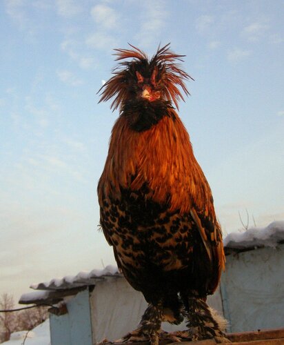 Я сомневаюсь, что у русской хохлатой, перья уложены в сферу, спорить не буду, пусть хохловоды поправят..., но думаю, что Вашим оставшимся петухам, более подошла бы вот такая кура, с внешними развернутыми перьями в хохле, да и ноги уже, почти, "павловские"