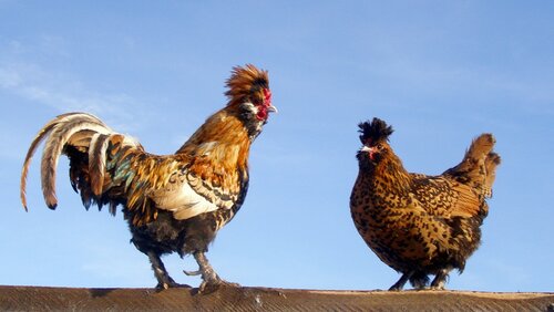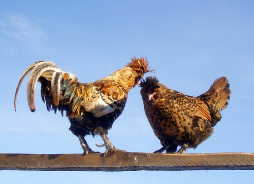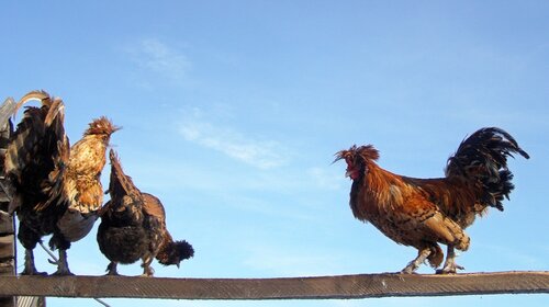 Польская хохлатая (ПХ) история происхождения: в 12 веке вышла из Азии (Китай) вместе с монголами (по мере захвата земель монголо-татарское иго) шла в Россию, Украину и далее в Европу именно через Польшу. Поэтому ПХ и РХ это близкие родственники вытекающие одна из другой ну и различны только от местной популяции, которая смешивалась с азиатскими хохлатыми курами по мере продвижения ига.