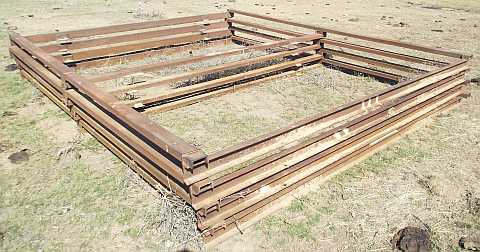 А 4 новые телеги оборудовал съёмными рамками. Снимаются всё борта и прикручиваются на 12 болтах рамки: (здесь все 4 снятые сложены на хранение, возили на них тоже по 13 рул.)