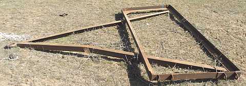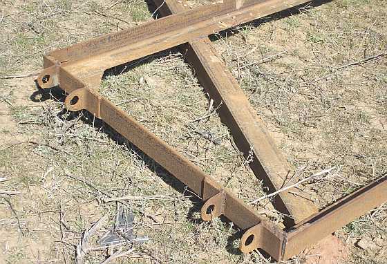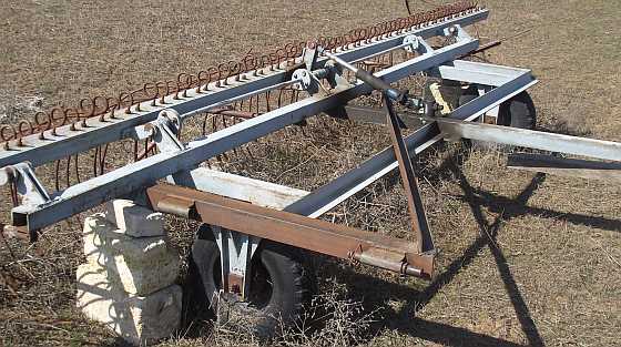 А ещё как мы сделали из двух граблей одну. Сварил специальную раму с ушками по бокам. На рамы граблей добавлены раскосы из угольника с креплениями для ушек.