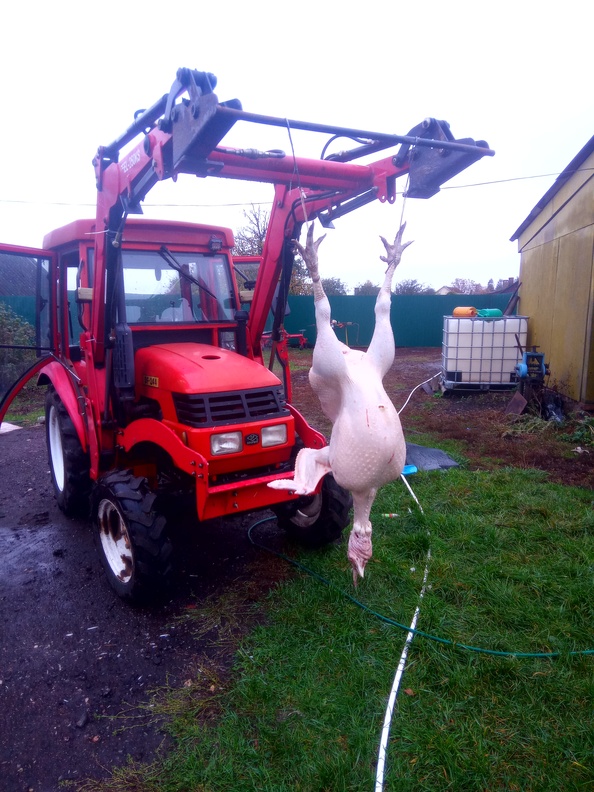 Окунать в шпарчан. Да и перо убирать на весу проще. Бережем спину