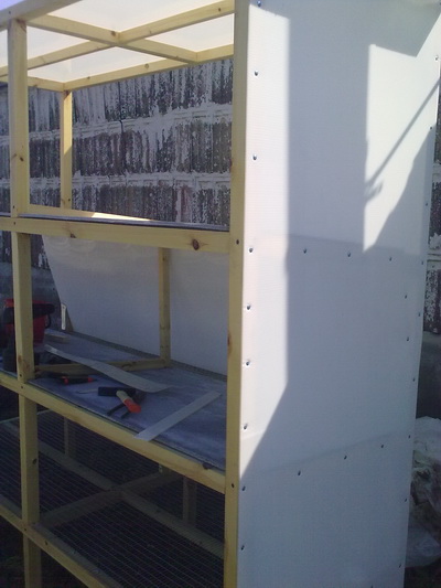 обиваю с одной стороны снружи, изнутри брус защищен либо шинкой либо куском сетки, толщина поликарбоната четверка усиленая Российская, если возьмете Китайскую пожалеете очень быстро, лучший вариант Израильский усиленый но дороговато.