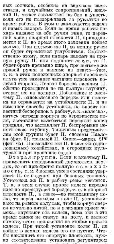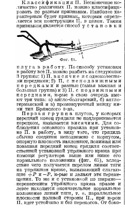 Я сомневаюсь что у кого либо здесь присутсвующих есть опыт работы с конными плугами. Сам только в детсве видел как пахали такими. Поэтому для того что бы понимать как были устроены и работали эти плуги надо обратится к "технической" литературе тех времен. Вот страничка из части (приложена ниже) про плуги какого то научного труда. Тут описан принцип регулировки глубины пахоты конным плугом. Хотя тут его не называют "конный", так как это не принципиально "кто или что" его тянет (конная или механическая тяга). Ведь первоначально трактора использовались просто вместо лошади на тех же орудиях.