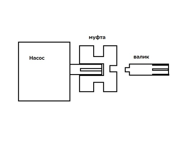 То есть, нет там для этой муфты отдельного вала на котором бы она ходила. Центрируется и передвигается по валу насоса.
