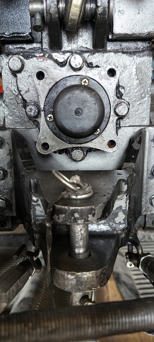Муфта фабричная от одноцилиндрового Шифенга-244, тот, что на два болта крепления к КПП. Самодельный только валик привода шлицевой: