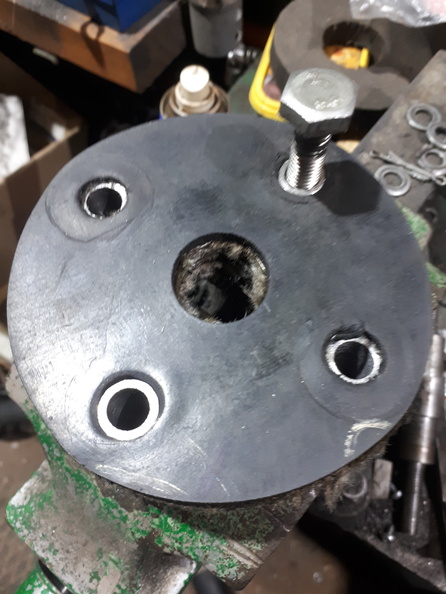 Ну я в относительном центре просверлил коронкой на 25 отверстие. Затем в это отверстие вставил промежуточный вал, он кстати относительно плотно зашел. Далее на вал одел флянец и просверлил два отверстия через флянец в капролоне. Также поступил и со второй половинкой. Конечно я уверен что центровка плохая. Но будем тестировать и наблюдать. Раскатить трактор для меня не проблема...
