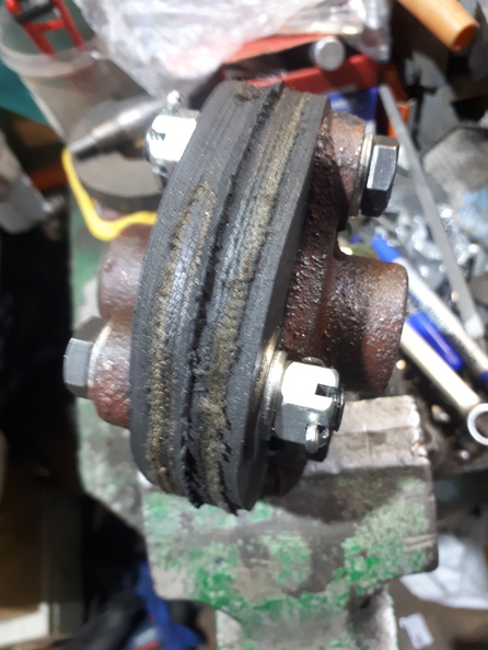 Шайбы рассверливаются, после сборки на оправке , по установленным полуфланцам. В отверстия запрессованы втулки высотой 22мм для болтов. После удаления оправки собирается муфта протягиванием болтов до упора полуфланцев в запрессованные втулки 22мм. Болты в теле муфты - гладкий цилиндр без резьбы для уменьшения износа. Муфта служит надежно.
