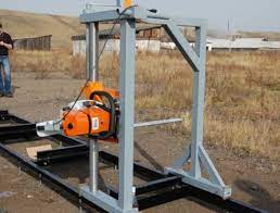 Ну а если бензопила установлена на шинной пилораме (см. фото) - всё ещё проще. Тогда блок карбюратор-воздухофильтр-бензобак будет установлен на кронштейне пилорамы, рядом с бензопилой