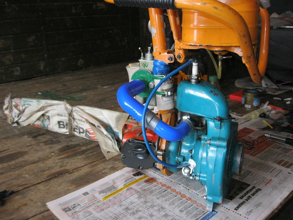 Однако - если выставить такие холостые, при резком переходе с полной нагрузки на холостой ход двигатель начинает идти в разнос (даже с отпущенным рычагом газа)... Плюс - нет кнопки остановки двигателя, поэтому глушить можно либо затыканием выхлопного патрубка, или отпусканием рычага газа (отрегулированного так, чтобы не держал холостые)