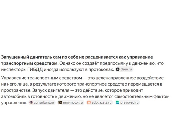 Таким образом, нахождение на водительском месте транспортного средства не тождественно управлению им, а подобные действия водителя необходимо оценивать с точки зрения мотива и наличия внешних обстоятельств (причин).