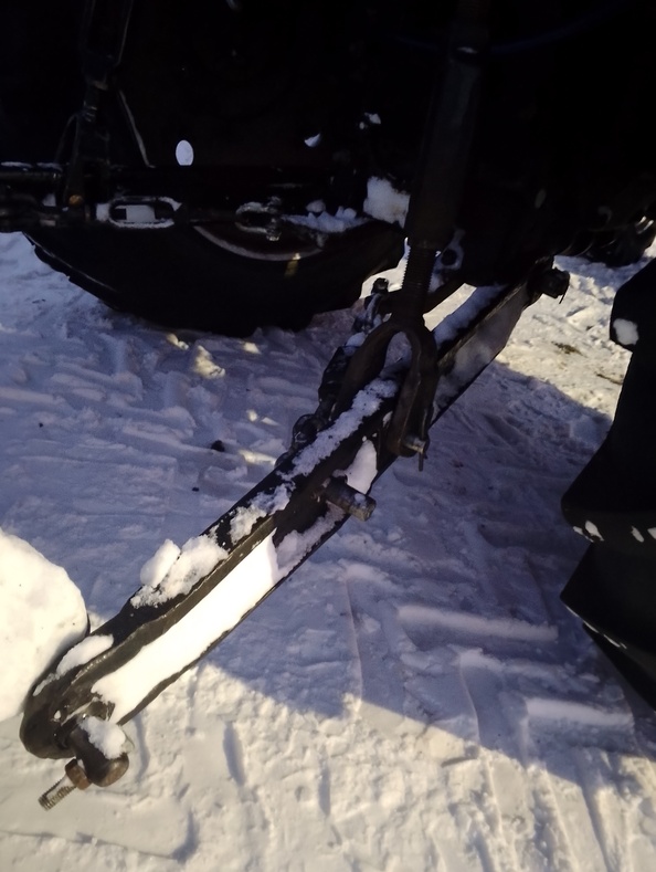 Длина осталась стандартная. Концы тяг загибал, потому что цепляя косилку, нужно ее вправо отводить тягами. Если бы прямо тяги без загиба, тогда правая тяга не даст косилку отвести вправо. Кроме этих тяг, все остальное родное. Поставил эти тяги, потому что зимой пользовался задней лопатой грейдерной (косой). Вперед еще нормально, а если назад толкать, то левую короткую тягу (удлинитель) гнуло. Пару раз загнул, потом сломал. Купил новую. Опять загнул. В итоге эти тяги сделал. Трелевал лес на этих тягах. Все нормально