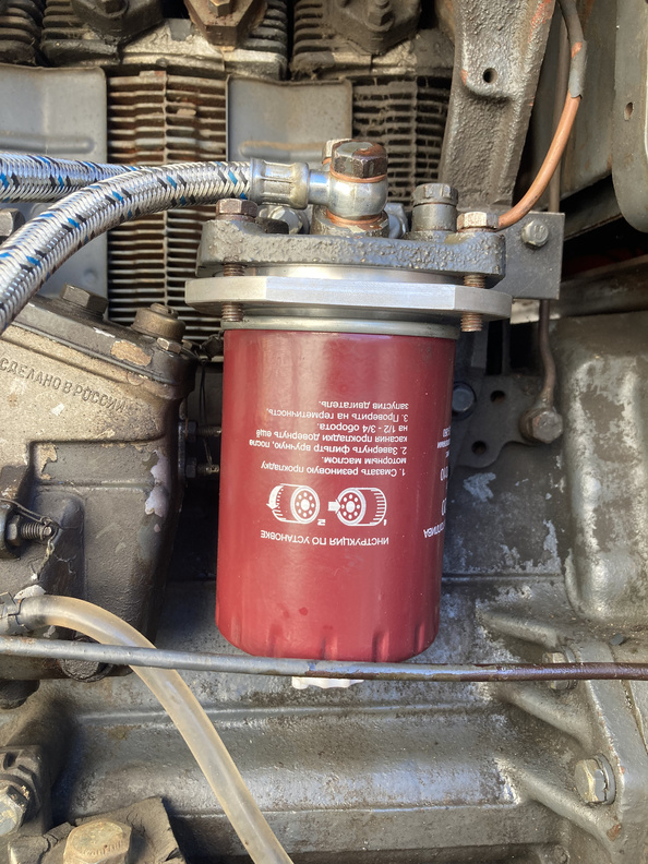 У меня мтзовский фланец под фильтр, такой как у вас на раме, а обрати с ТНВД и форсунок в бак.
