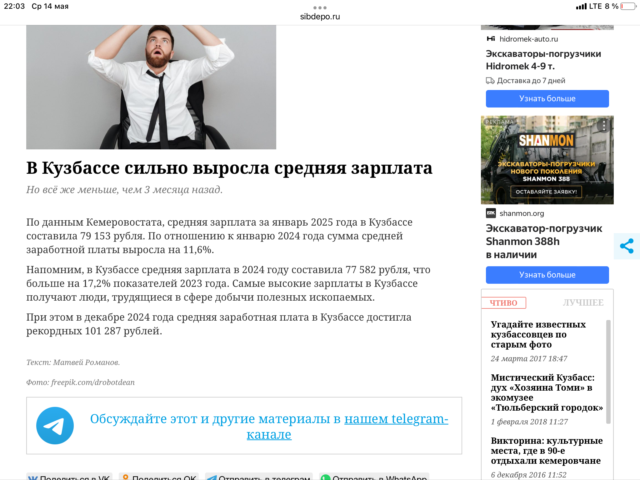 А по поводу ЗП в Кузбассе: Вы всему верите, что трещат по телеку и пишут в интернете?