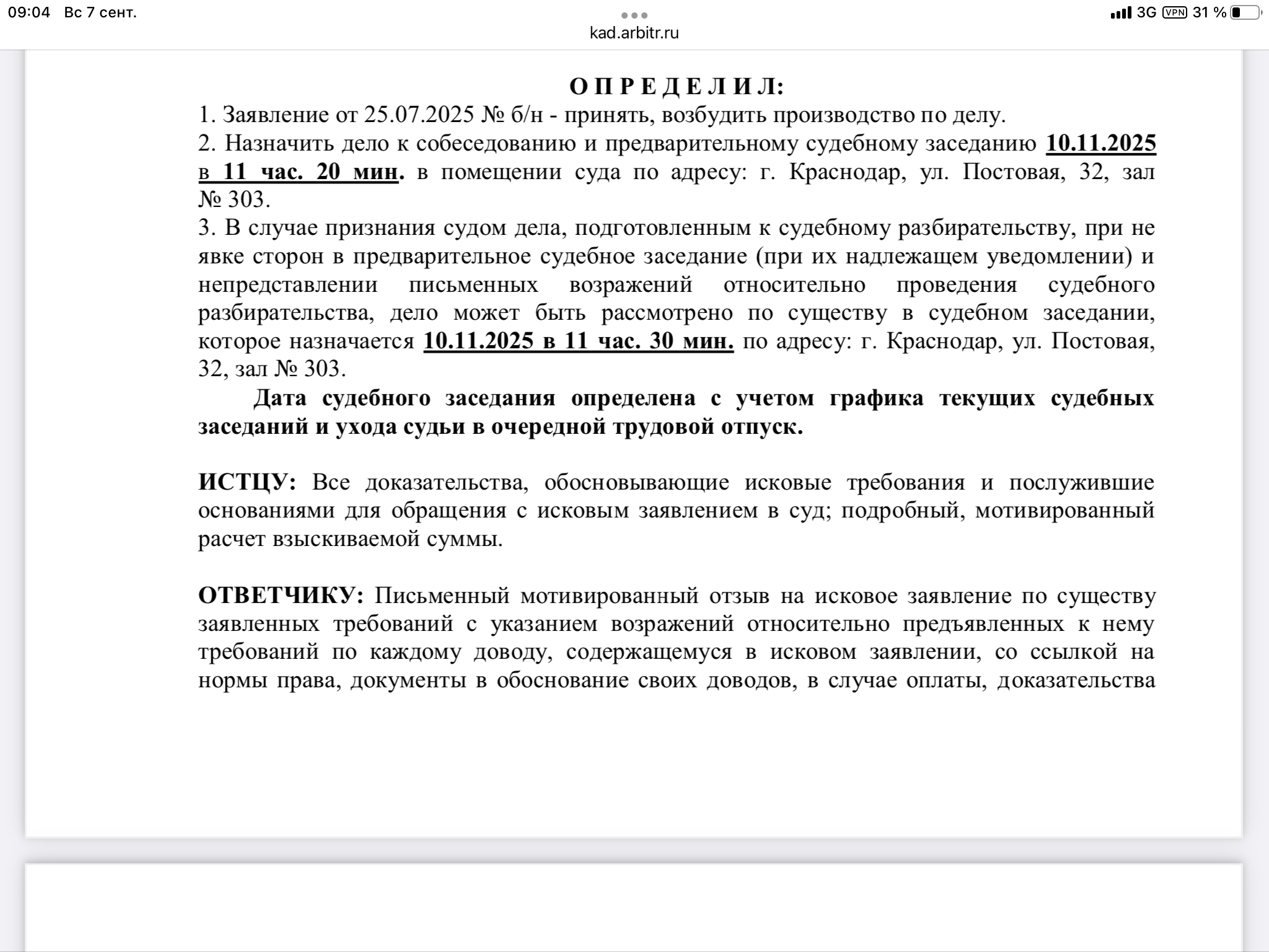 Итоговый судебный акт по делу № А32-45155/2025 не вынесен, определением суда иск принят к производству.