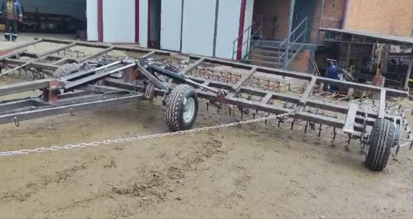 добавил для понимания. Здесь 10 м захват. Почти 10 м. По заумному расчету, нагрузка на МТЗ-1221 должна быть как на 15 стандартных борон. А там поле покажет.