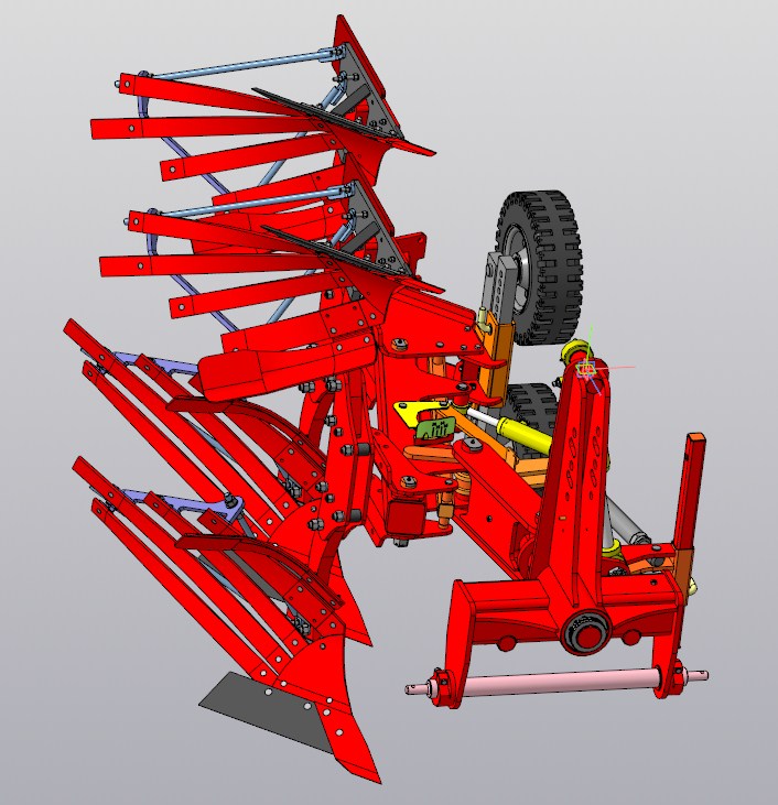 Закончил всю линейку оборотников от 2 до 9 корпусов с гидравлической регулировкой ширины. В связи с унификацией пришлось и эти рамы с мех. регулировкой переделать. Так что вид плугов будет слегка другим.