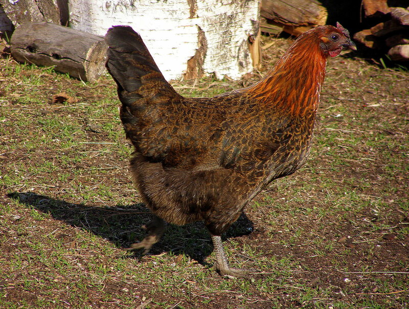 Но это совершенно другое и отличное от кур появивщихся в результате толи случайного скрещивания, толи специальнобезконтрольного. Я очень хочу обзавестись курами такого порядка( русскими деревенскими). Но проверяя каждый раз информацию о беспородных или как говорят деревенских курах, я натыкаюсь на брамистых ломаннбраунов, орловизированных леггорнов или московских черных кучинских,ю т.д. И только дважды за свою, правда не столь большую жизнь, наткнулся на настоящих " беспородных деревенских" . В 1992 году в поселке Суна Кировской области, в доме напротив райбольницы. Это куры были столь удивительны и разнообразны по окраске и красоте гребешков, что захватывало дух: ситцевые, черные, мраморные, пегие, золотистые пятнистые, фарфоровые, бурокрасные, голубые, куропатчатые, желтолимонные, бронзовые колумбийские, белогрязные; а гребни: листочки, короны, бабочки, рожки, книжки, розаны, стручки и ещё масса промежуточных форм. И второй раз в Мари Эл в 97 км от села Улеш., название как то выветрилось. Увидел 30 курочек и 7 петушков, куропатчатого окраса , при чем петушки были с золотисто-соломенными, оранжевыми, и краснорыжеогненными гривами и перьями поясницы. В стаде одна или две курочки были чисто черными, одна ченая мраморная, и одна буромраморная. У курочек длинющие хвостики, сжатые в форме веера. Хозяйка сказала тогда, что куры и зимой ночуют или под стогом соломы или в зарослях кустов черемухи.( если бы не видел сам, не поверил бы, а это было минус 28. Спросил тогда: гребешки не отмораживают, ответ был просто ошеломляющий: нет он у них на зиму утягиваятся, а весной распускается. Они мне внешне тогда напомнили банкивских кур. Но у всех были бронзовые ноги. Я до сх пор жалею, что тогда не приложил все усилия для того чтобы привести этих кур домой.