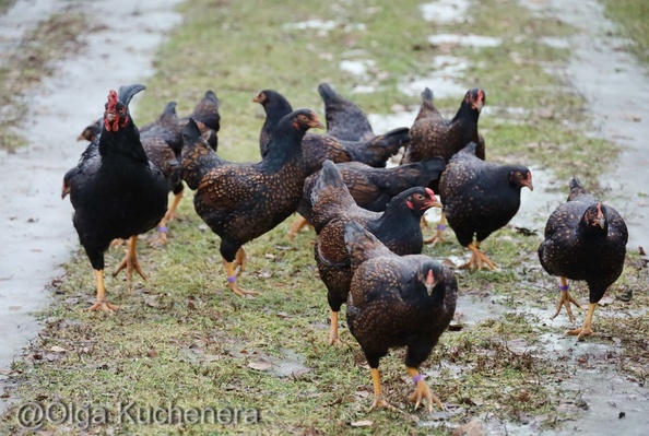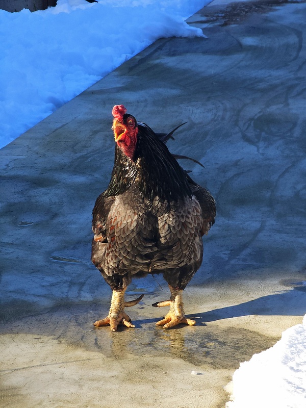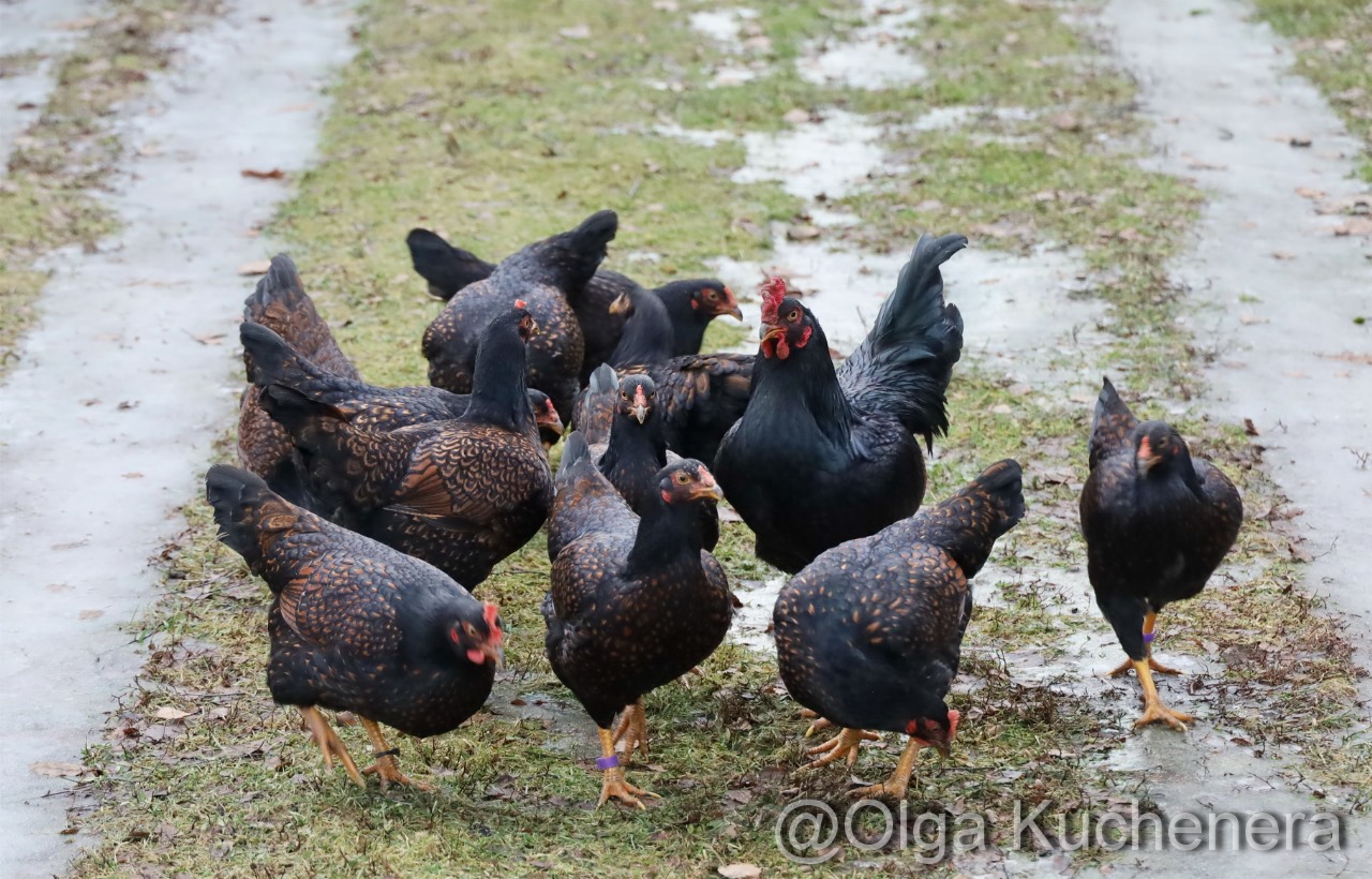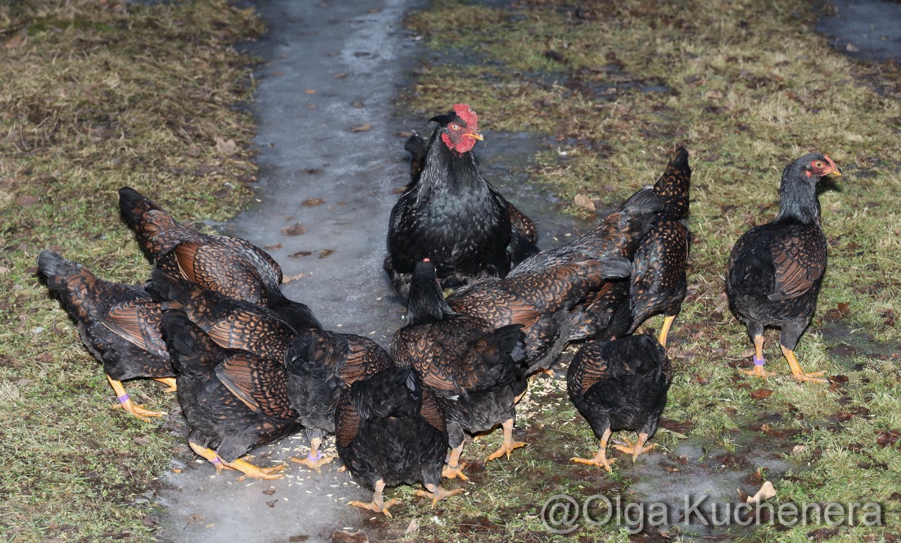 Удивительная зима. Куры подумали, что весна пришла и занеслись без досвечивания. Гуляют, травку щиплют.