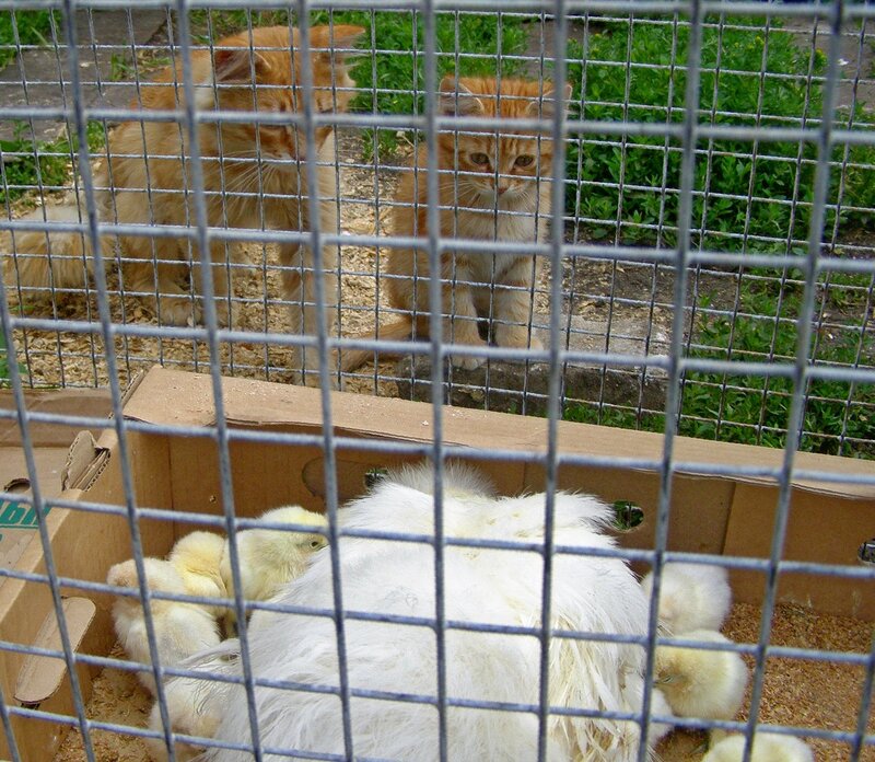 Еще недавно была на рынке и не удержалась, прихватила пару цыплят пуховых голубых, вот тем досталось, когда я попыталась их поместить с остальными...