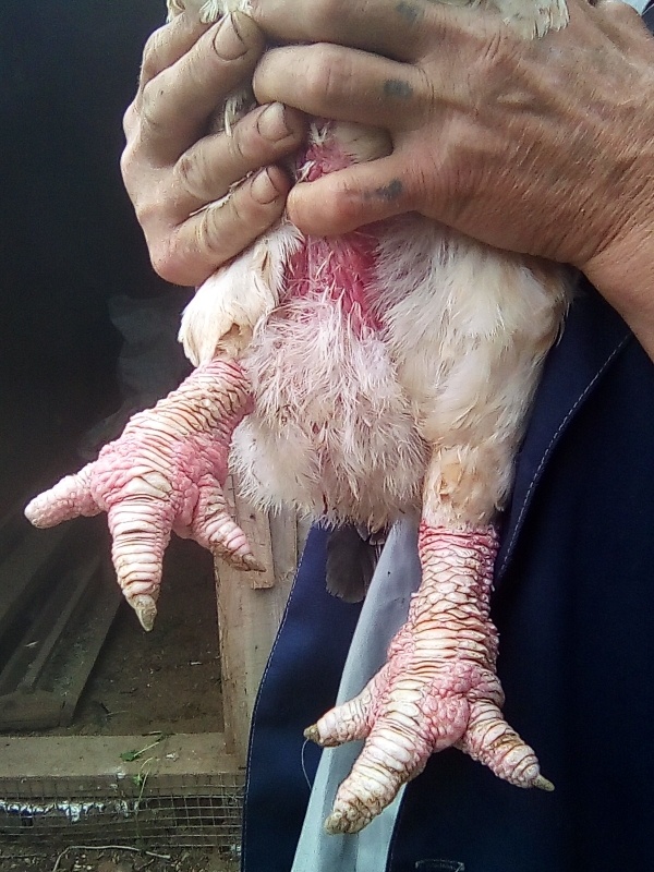 Надо быть совсем дилетантом, чтобы не видеть даже по фото, что птица крашеная. На самом деле цвет лап, ушных мочек у них грязно- розового цвета. Ну вот как там, на данем плане лапа виднеется. Такая Толщина ног достигается только к 3-4 летнему возрасту, а не в 4 месяца, как врут в интернете. Поменьше интернету доверяйте. Купите яйцо, проинкубируйте, выращивайте, тогда и будете судить, где правда, а где ложь! Вот на этом фото лапы годовалой птицы