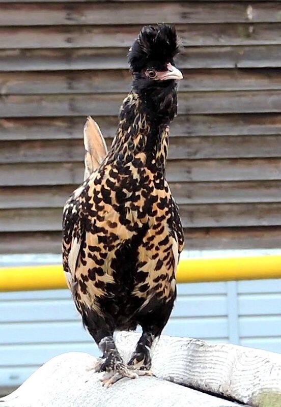 Учитывайте, что фото не профи, петух уперся хвостом в клетку и готовится отвернуться от фотографа, голову втянул и отвел в сторону.