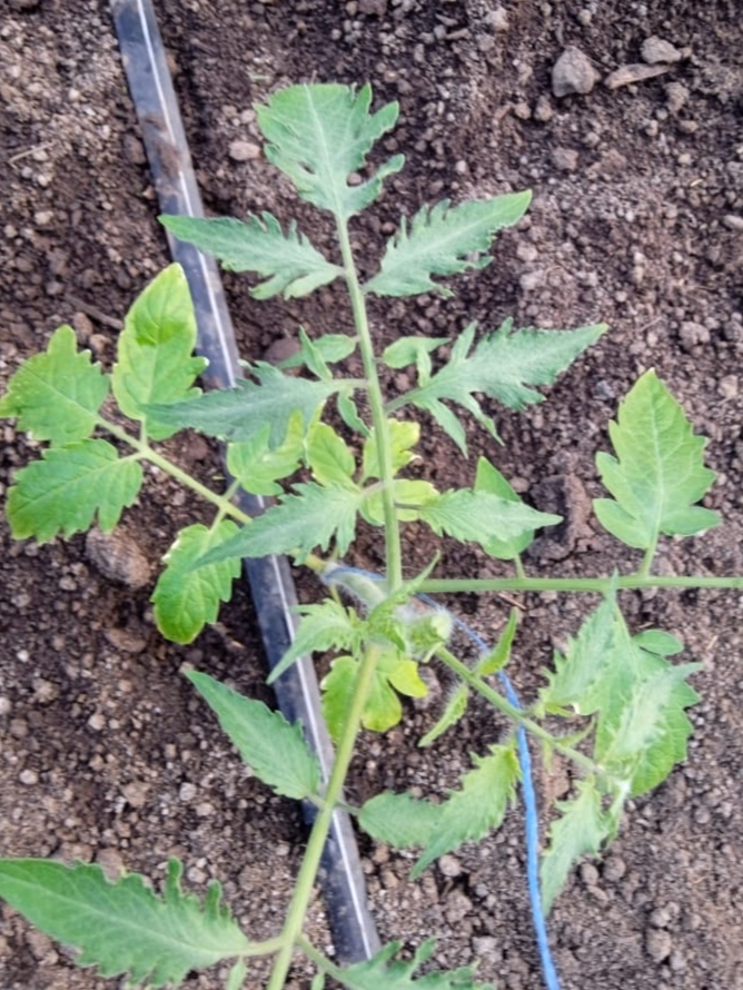 Подскажите пожалуйста,почему у помидоров на макушке растут листья ёлочкой? В стаканах росли хорошо, поливали Монофосфатом калия. После высадки через неделю листья стали мелкие и ёлочкой.В каплю давали Нитрат кальция 1 г на куст и по листу тоже кальций такой дозировкой. Такие листья не у всех кустов.Примерно у третьей части. Можно ли выправить куст?