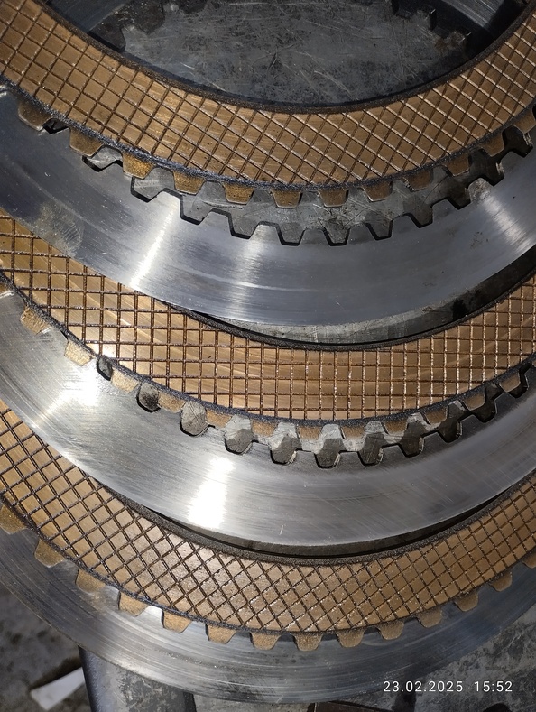 мотор 300 лошадей, уставших правда, зазор 4-5 мм на всех фрикционах, следов что поджаренные или изношенные нет. б/у дисков тоже не валяется, первый раз на месте разбираем с советских времен.