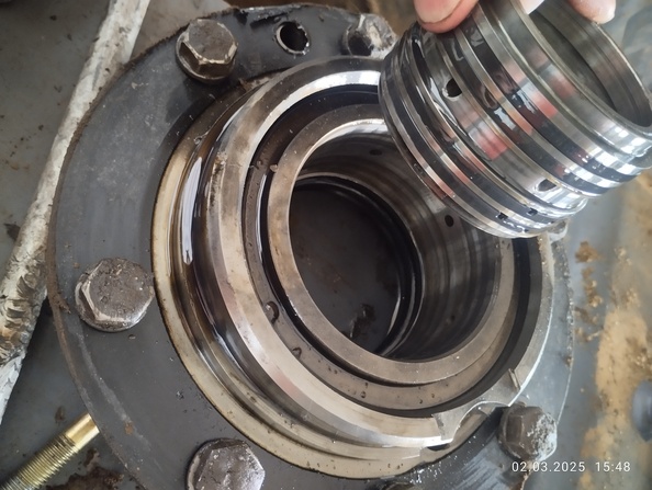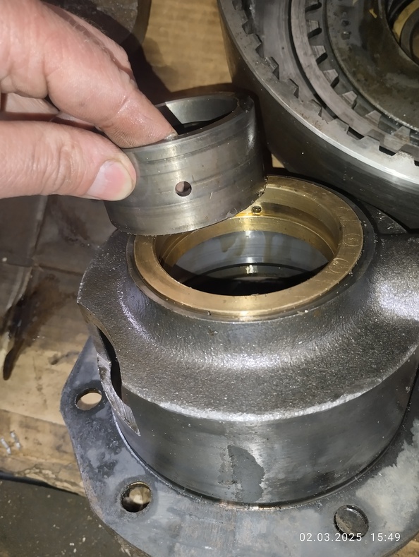 Обратил внимание на разные опоры ведущего вала, а точнее на уплотнения, на задней опоре стоит втулка с уплотнительными кольцами а в передней без уплотнительных колецстальная и латунная втулки.