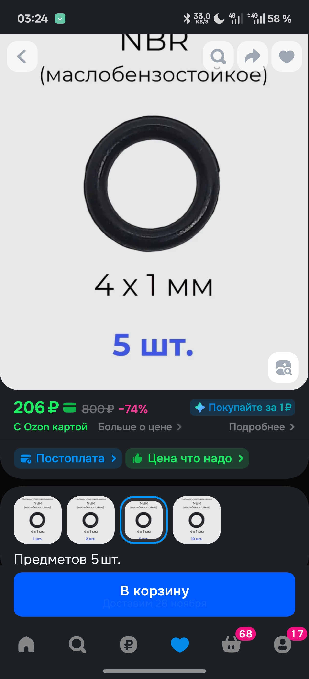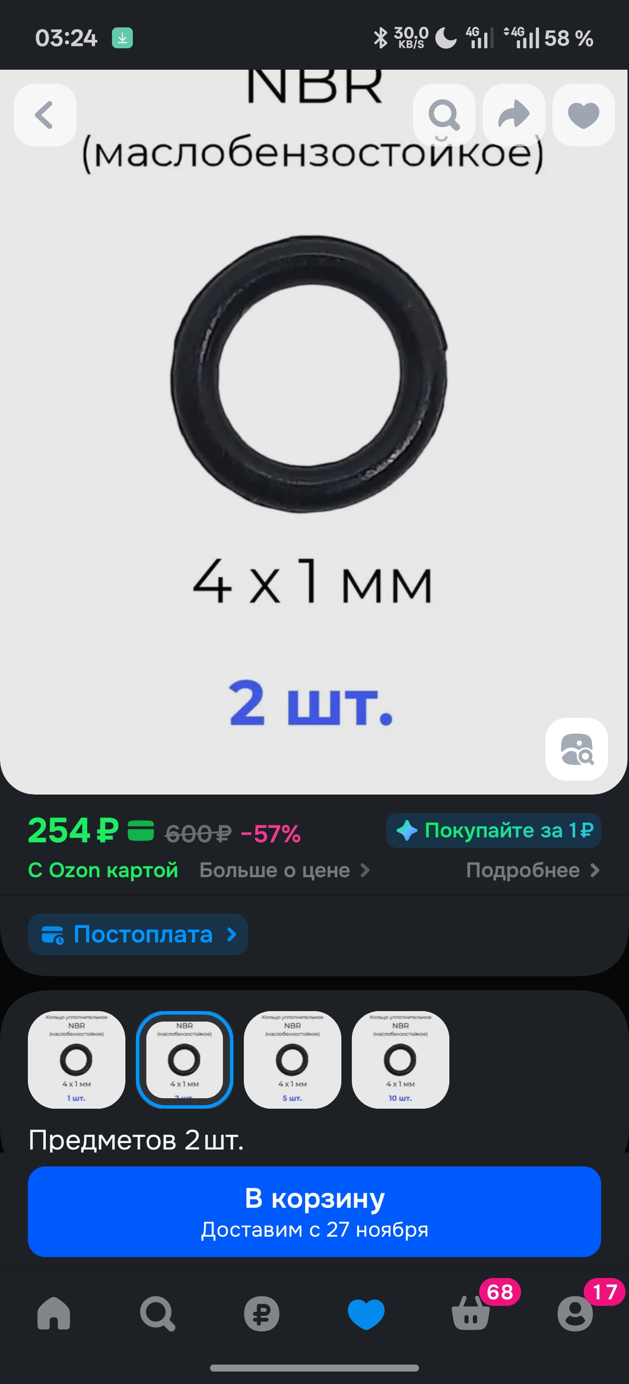 На одной из горелок порвалось уплотнительное кольцо на газовом канале. Искал на Озон. Снова встретился с нелогичностью ценообразования.