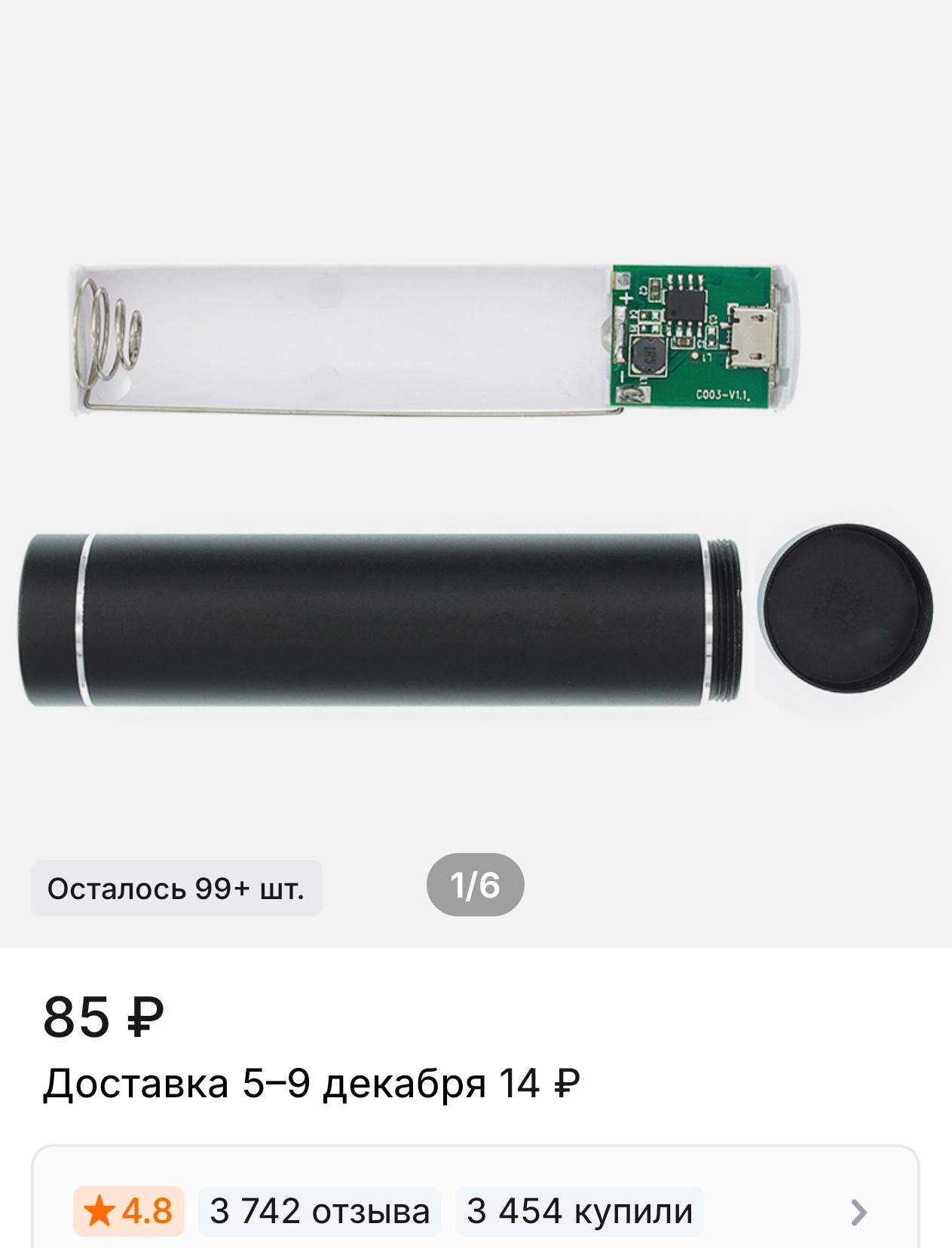 Или вот повербанк меньше ста рублей. Тоже с платой.