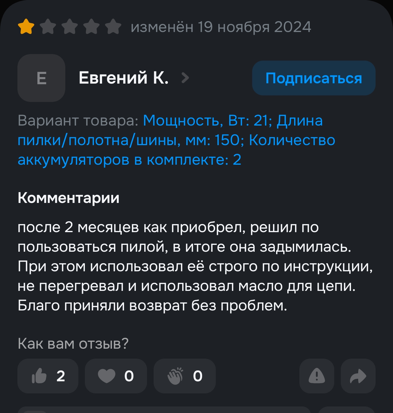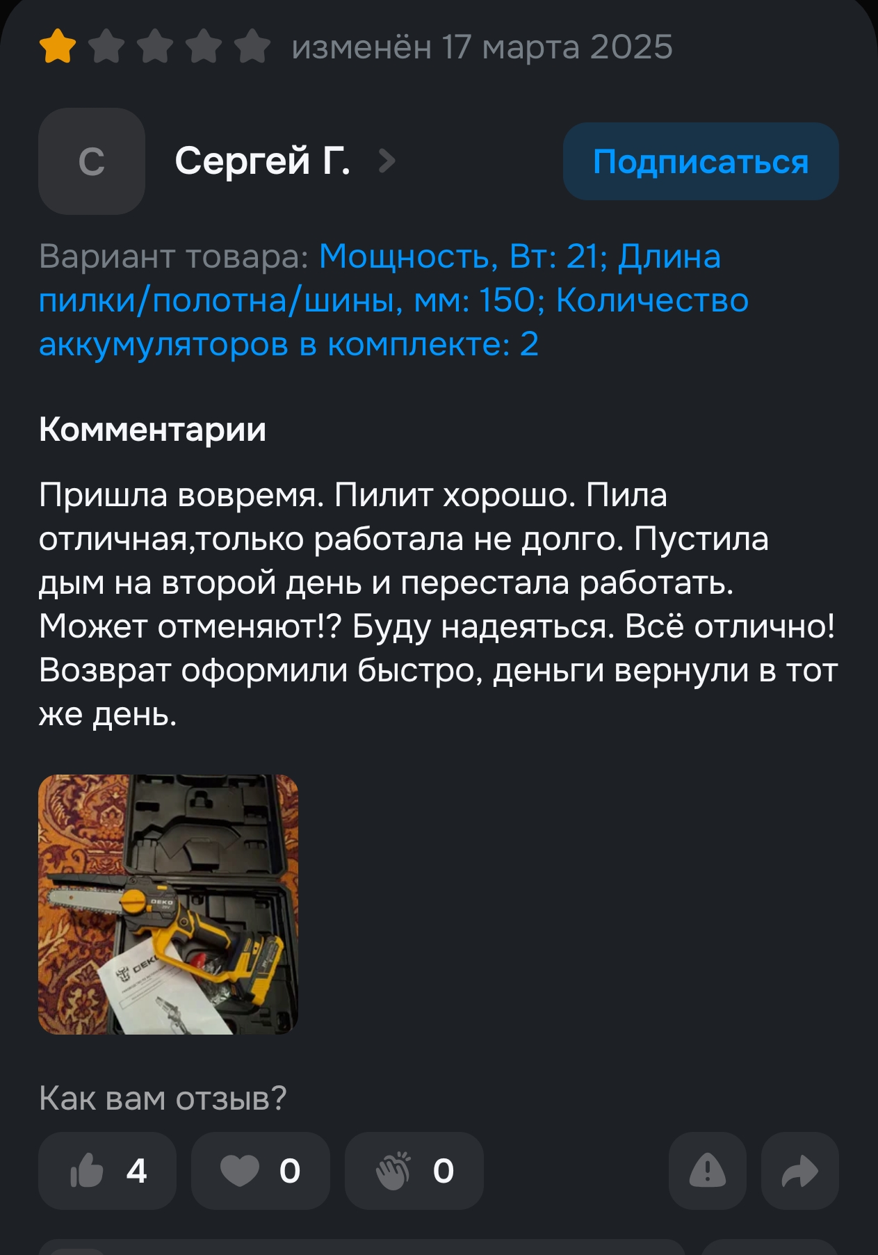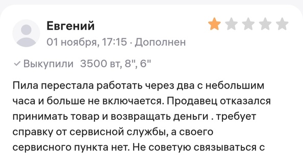 Ради 810 рублёвой пилы - я и бегать никуда не стану - знаю что купил какашку, но я и купил зная что если сломается через минуту - выкину и она для рыбалки с ночёвкой и отдыха.